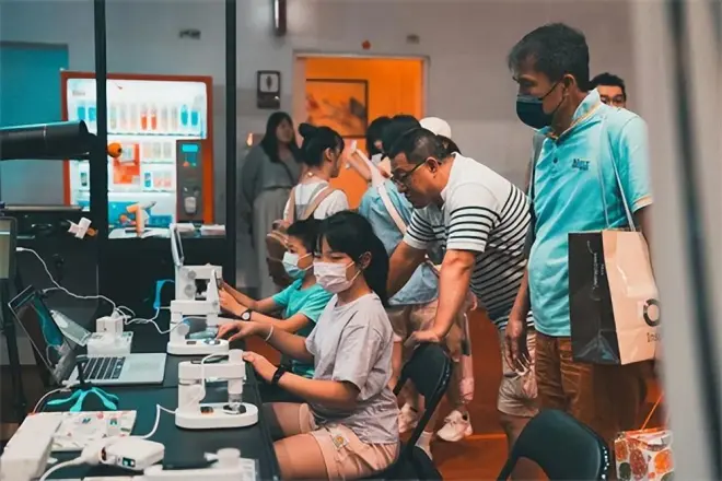在产品展示区域,BeaverLAB携多款产品齐登场,智能显微镜M1、M2、MX,智能天文望远镜、胶枪等,BeaverLAB一经亮相,就吸引了众多观众驻足参观,汇聚了超高人气,充分诠释其“发现未知 创造可能”的品牌理念。