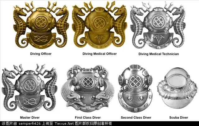 Navy Diver Badges - 海军潜水员级别章,授予达到不同级别的海军潜水员。