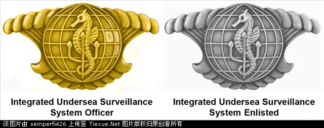 Navy Integrated Undersea Surveillance System Insignia - 海军水下探测资历章,授予合格的操作声纳等各种水下探测系统的军官和士兵。