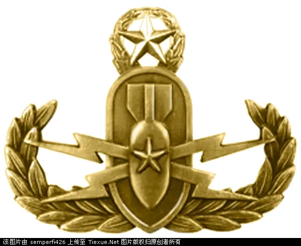 EOD Badge ("Crab") - 拆弹资历章,这是美国武装部队中唯一个各个军种都有的资历章(没办法,想炸老美的太多了,各军种都有拆弹专家),其范围从水雷、路边炸弹(IED)到核武器、核废料都包括在内。
