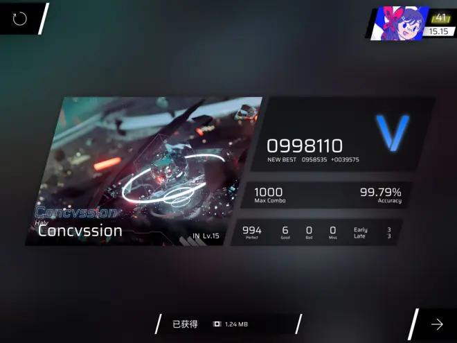 我有一大堆FC的曲子,但是AP的曲子根本没有多少,也就是说我是一个只追求FC而不追求AP的人,我的FC和AP的比例是12:1,我的rks(ranking score,Phigros头像下面的数值)会在简介里展示数值,下面是我的一些截屏成绩👇