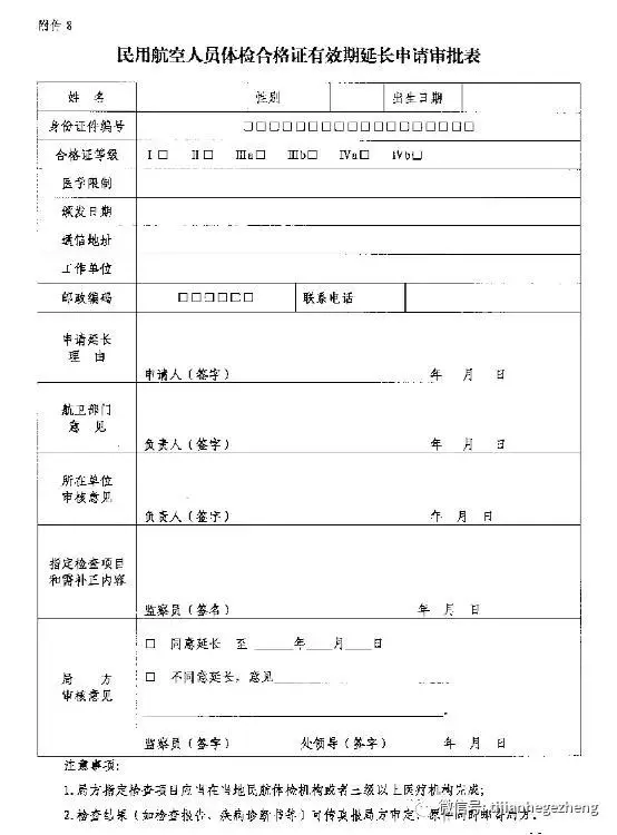 7、局方对同意延长体检合格证有效期者,在“体检合格证管理系统”中签署同意延期意见和延长期限,并更新体检合格证。更新的体检合格证应当在限制栏内签注原体检合格证有效期和本次批准延长的期限等字样。