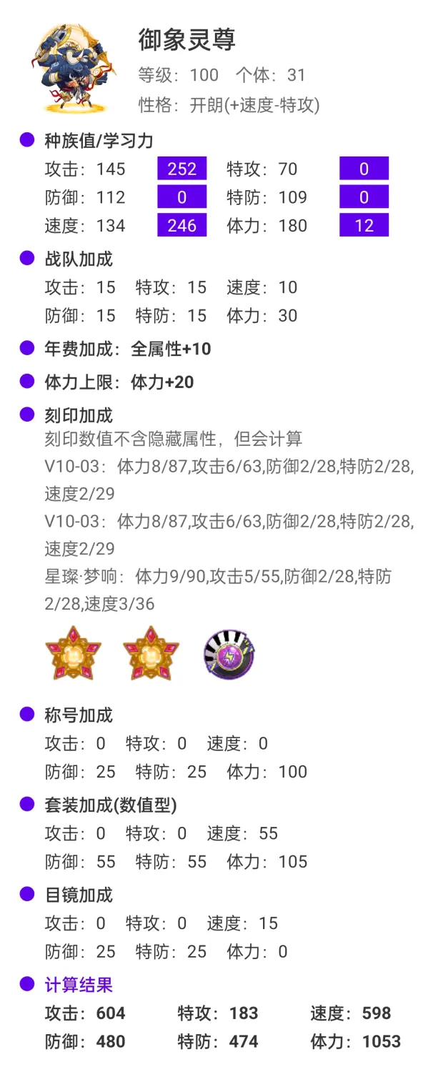 分奴核心精灵宝石最好合7,威力最低用6,当然威力没必要合7,成本太高划不来。关键宝石绑给关键刻印(指不会轻易解绑或替换升级,一般是九霄以上),明确了要刷的能力值范围后,性格一般选择种族最高的一项(基础数值最高,性格只加种族和学习力),因此有性格加成的一项,学习力尽可能刷的多,最好拉到性格加成最大化配合刻印将这项数值直接补到理想范围,所以3个刻印对应的数值总和要把握好,然后再看其余数值能否满足需要。坚硬强袭可以解放一部分数值,所以也会对分配产生一定影响,同时选种族最高的一项不一定能找到最优解,而是结合该精灵具体数值要求来决定,如神谕海皇,如果我对他的要求是强袭590速570攻1080以下体力,那么用固执很难满足,必须双43,成本高,且速印攻高,攻击必然要少给,最多到158,那么我不如用开朗,刻印向低攻高速方向选择,如双十爆攻+一体,虽然速度种族低7点,但能够刷到246,比固执更容易满足要求同时最大化性格加成,最终高出一点总和。