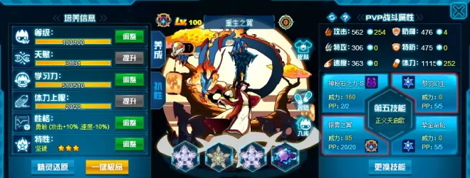 19年的重生可以刷点速度超车星皇,50回合制利用这种信息差连打神秘石偷鸡,预判330切潘多拉,然后同切希瓦压制索伦森。当时普通的攻体重生就能轻易吃下主流攻速索或高体索背弃诸雄+回合结束粉,以攻特防为主的双体一攻坚硬能够吃下笑傲暴击诸雄(630攻,非精神无威力宝石),同时不怕残血背弃吃月亮导致顶不住,可以多次压第五拼暴击,即使索连点背弃后嗑药规避后手盔,也能轻松吃下+2诸雄。对潘多拉抵抗力也更强。但是自20以后,现代超车速开始内卷,索伦森由爆体改为爆攻,重生卷不过,也不可能去顶,作为高减伤高续航的纯红输出精灵,除高倍和索以外威胁重生的多数以高混伤为主,所以重生之翼的学习力指向只能是攻体,剩下的就是由刻印搭配和特性来决定。