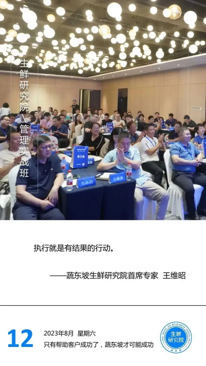 2023年8月11日-12日,由蔬东坡生鲜研究院主办的“生鲜配送企业管理实战班——破局●新生●增长”培训活动,汇聚了近百名来自全国各地的生鲜配送企业家精英。