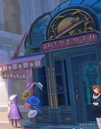 由店铺标牌和门前装饰可以看出,这是一家销售帽子的商店(只可惜图研所没更新枫丹文字对照表,不然就能分析出店铺名称了)。