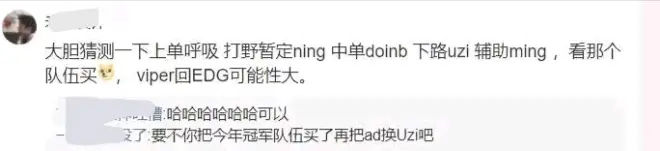 还有就是小明也会复出,而且将加入TES,不过也有说加入EDG和uzi联手的,但是我个人觉得不太可能,因为EDG在有meiko的情况下,是很难再签约小明的,还有就是viper有可能回归EDG,但是几率非常小。