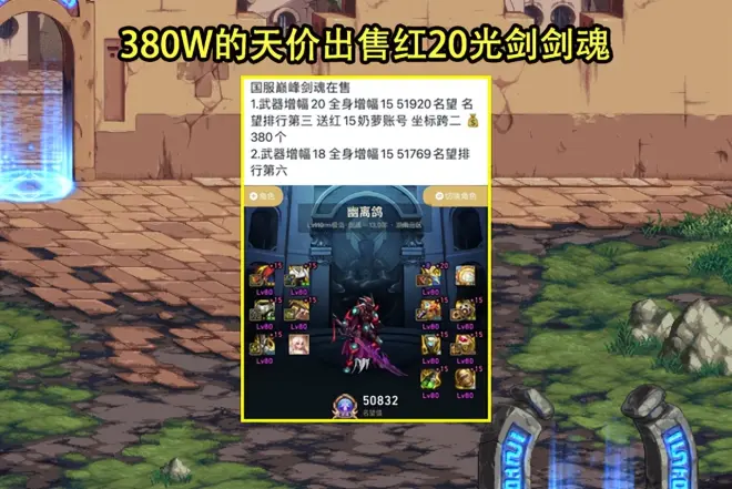 那么卖多少呢?售价高达380W,比前段时间国服第一鬼泣售卖的80W价格还要高近5倍,简直恐怖如斯,不过红20光剑确实也配得上这样的价格,毕竟是国服唯一一把,其他部位冲16~17就能成为第一剑魂。