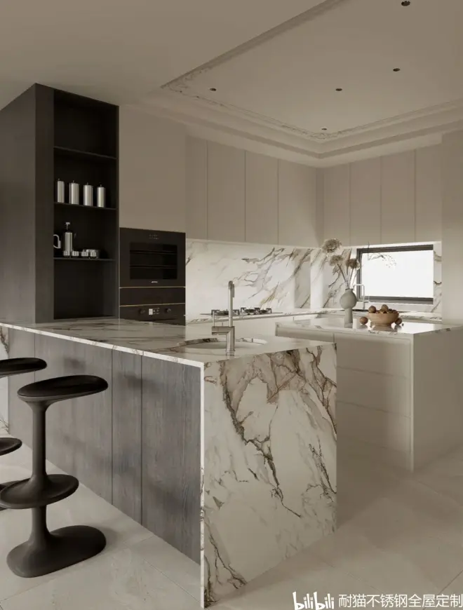 厨房翻新选择不锈钢橱柜,主要原因是不锈钢的耐用性久,防火耐高温,更适合在厨房环境使用。其优异的耐用性和耐腐蚀性,能够经受长期的使用和时间的考验。即使在潮湿的环境下,不锈钢橱柜也不会出现发霉、变形或开裂等问题,可以长期保持其美观和实用性。