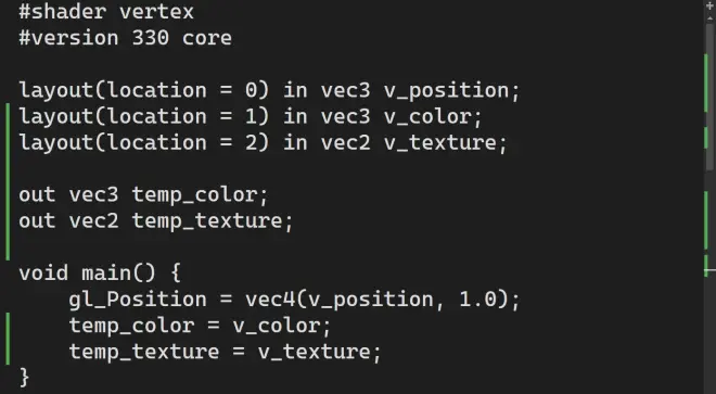 顶点着色器:我们把纹理坐标发送到顶点着色器中,再从顶点着色器发送到片段着色器。