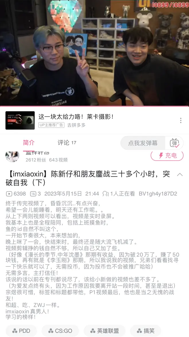 还有我不会称cxz,我一般都是喊他小狐或者im哥,蓝哥是喊他小新或者阿姆哥,这一点你们去翻视频就知道 最最重要的一点,他是肖战的粉丝,而我从来不是,他模仿我做进度条模仿我做标题,视频内容却是影视剪辑预告里面是吹捧肖战的。