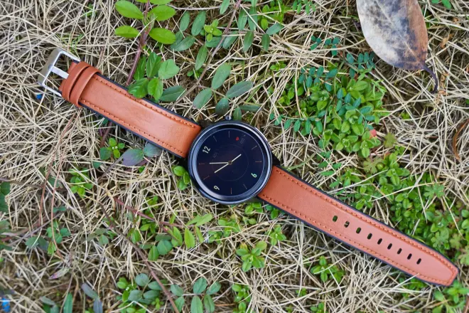 圆形表盘是经典样式,皮带棕的配色沉稳。手表默认自带8种表盘样式,通过App更有海量表盘可供选择,也提供了自定义选项供用户自由设计,多种百搭各种场合、衣着。