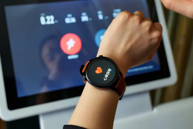 无创测血糖是E55S ProMax领跑行业的特技,使用和监测原理跟传统的指尖釆血不一样,并非直接测量血糖中的葡萄糖含量,而是通过长时间的佩戴让智能算法学习血液形态之后,通过大量数据测算血糖的变化趋势,让我们知道日常饮食、作息、运动等对血糖变化的影响,帮助调整生活状态。使用起来非常简单,仅需保证皮肤与手表背面的传感器无缝贴合,通过dido自己的近红外光谱分析技术,表背的传感器就能测出体内血糖曲线,无需采血,全程无感。