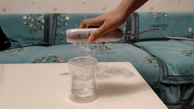 关于风力方面,我们跟家里现有的某牌子做对比测试。一杯清水放置桌面,风力同样调到最大对准杯子吹风,某品牌吹风机水面有波动,温度逐渐变热,让我惊讶的是DR吹风机则直接把杯子里的水吹的水花乱溅,温度方面没有变化,恒温吹风。