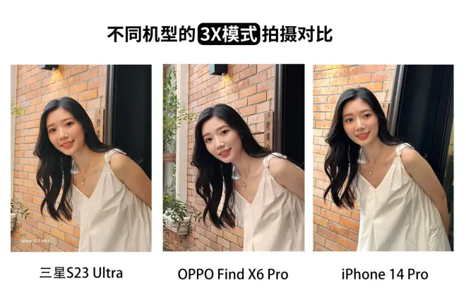 就像是现在三星S23 Ultra与iPhone 14 Pro两台影像旗舰,拍照效果与OPPO Find X6 Pro对比,在人像上美颜就不够国产细致,三星的美颜导致皮肤有断层,苹果是几乎没有美颜效果。而OPPO Find X6 Pro从3x拍到6x都能保障成像的一致,拍出来的照片更讨人喜欢。