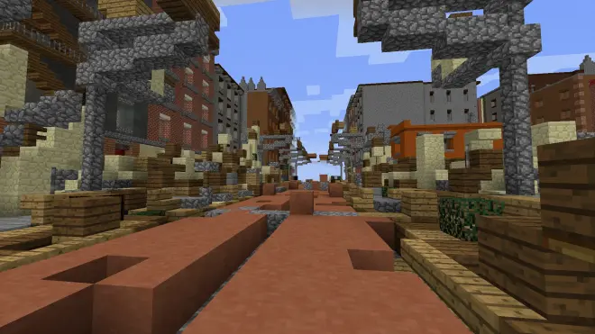 轟炸前、轟炸時和轟炸后的城市 #MineCraft