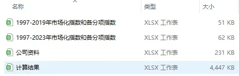 计算结果:将 “1997-2023年市场化指数”或“1997-2023年市场化总指数和各分项指数” 和“公司资料”(上市公司注册地所在省份)进行匹配之后的数据,方便大家直接使用。