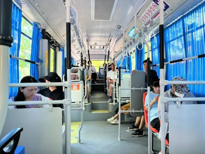 此次体验线路从中关村医疗器械园出发,前往天堂河小区,共14个站点,从一开始的搭乘到下车,整个旅程大约25分钟,一路乘坐非常方便。上车微信公交码刷卡,仅需一两秒。车内空间宽敞舒适,夏季全程空调开启,清心透凉,告别炎热酷暑。怕太阳晒还有遮阳帘,非常贴心。