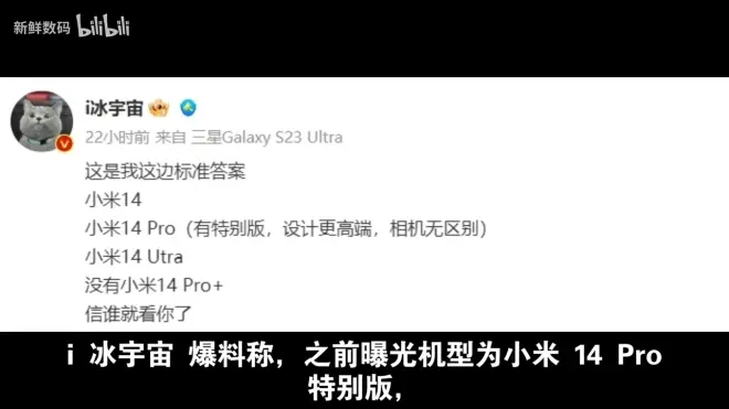 i 冰宇宙 爆料称,之前曝光机型为小米 14 Pro 特别版,设计更高端,相机无区别。