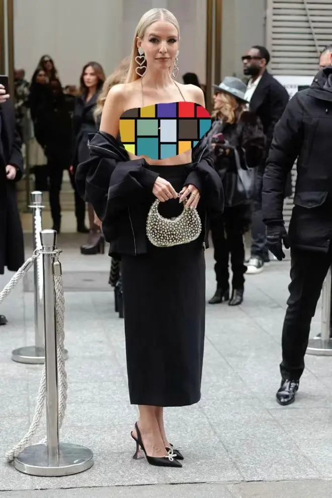 1 月 25 日,在巴黎高级定制时装周的 Elie Saab 秀场上,这位极具影响力的时尚博主穿着闪亮的文胸和黑色裙子,看成最近最大胆的红毯穿搭。