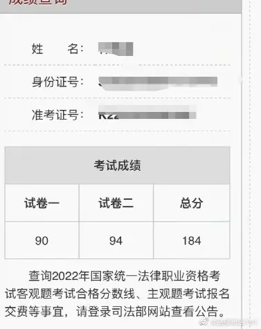司法部于2023年3月3日0时起开通2022年国家统一法律职业资格考试客观题考试成绩(延期)查询通道。今天我要骄傲的说一句:凡是我跟司法考试全程班的,踏踏实实复习到最后,打卡汇报坚持下来的,截止目前为止只有两位学生没有通过司法考试客观题,剩余的全部通过,通过率百分之九十。立帖为证。如有虚假,可以奖励1000元。坏消息是:今年法考放水量没有往年那么多了,感觉法考红利期即将过去,想考法考的学生赶紧复习。以下为客观题通过学生成绩截图(节选):客观题延期考试成绩汇报