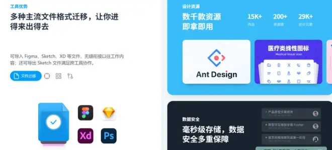 即时设计具有良好的文件兼容性,它支持Figma导入、Sketch、Axure和AdobeXD的设计文件,在个人工作台页面点击“导入文件”按钮就能将文件一键导入。