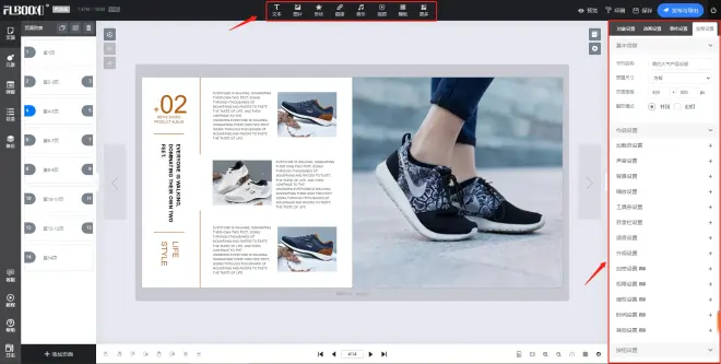 3.进入编辑界面点击发布与导出,填写信息,还可在这里给翻页电子宣传册添加音频、视频、链接、动画特效等等,丰富产品宣传册的内容;