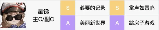 作为主C时,推荐搭配输出能力较强的副C,如皮克勒斯、泥鯭的士等,其中皮克勒斯和星锑的机制类似,相性较高。