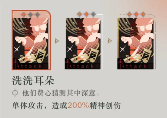 洗洗耳朵是一个标准倍率的单体攻击技能,无任何特殊效果,通常需要搭配【躁动的心】使用,否则伤害较低。