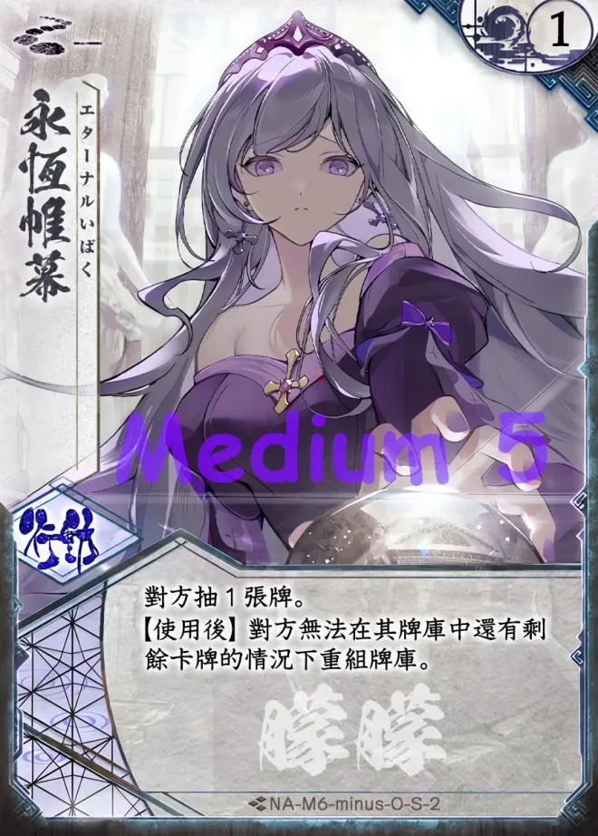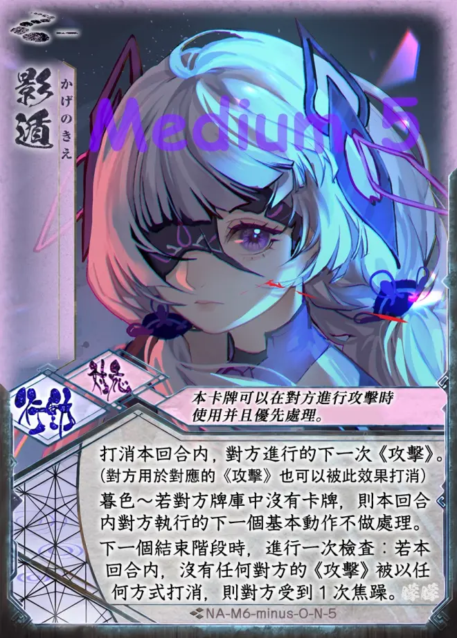 声明:卡图均来源于五维介质IP目前已公布的插画与曲绘等,本人制作仅出于爱好,绝不会将由这些立绘制作的卡牌参与任何商业行为。为此,作者特意在卡图上加了两层水印,分别是立绘版权所有的五维介质企划“Medium 5”水印和标志卡牌效果创意版权的“朦朦”水印。
