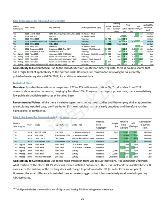 每种模式下的功率虽然更好理解,但变化比使用更快,并且是转变的主要驱动力随着时间的推移,UEC 值。在大多数情况下,安装基数估计值的变化量最小。作为消费者电子产品经历了不同的流行阶段,安装基础的最大不确定性是了解已安装基础中有多少产品被实际使用和插入。