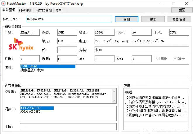 闪存:海力士3DV4-72L TLC 256Gb(1CE/1die)