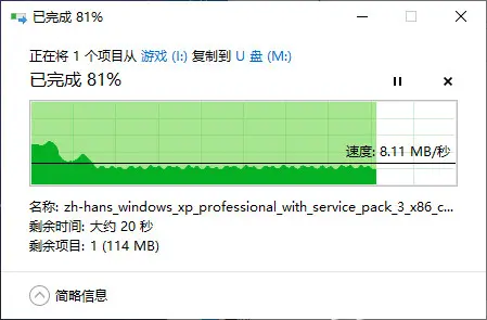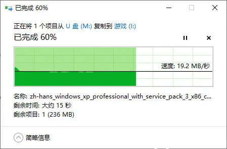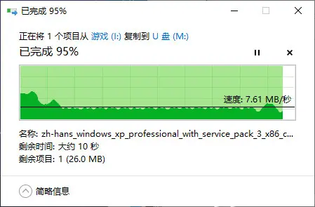 测试文件:WinXP专业版32位SP3原版镜像,约601MB