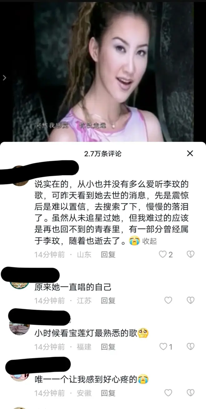 很多网友在她去世以后,不断的听着她的歌曲:《爱你的365天》以及《月光爱人》。