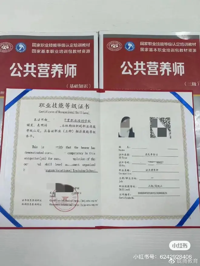 3、取得四级公共营养师职业资格证书后,连续从事本职业工作 3 年以上,经三级公共营养师正规培训达规定标准学时数,并取得结业证书。