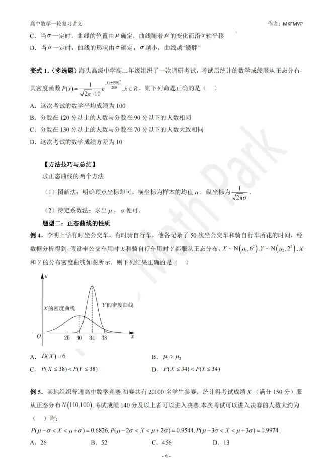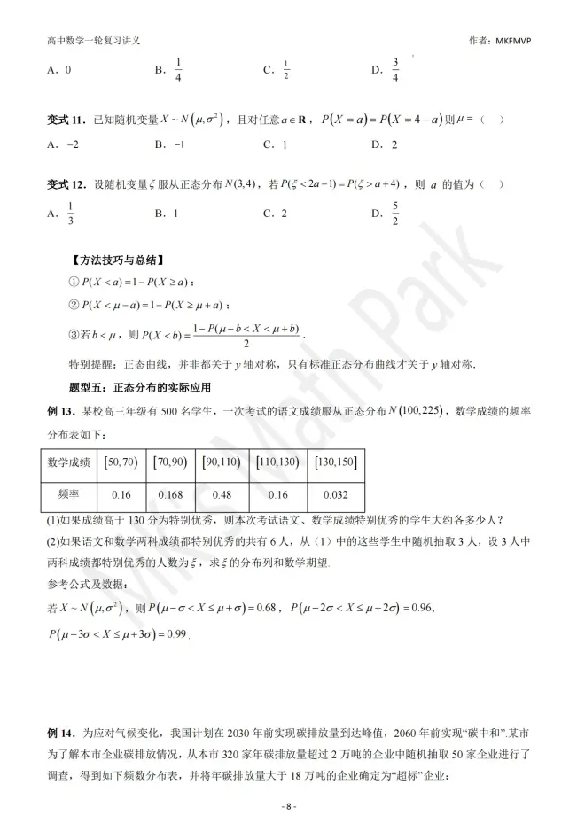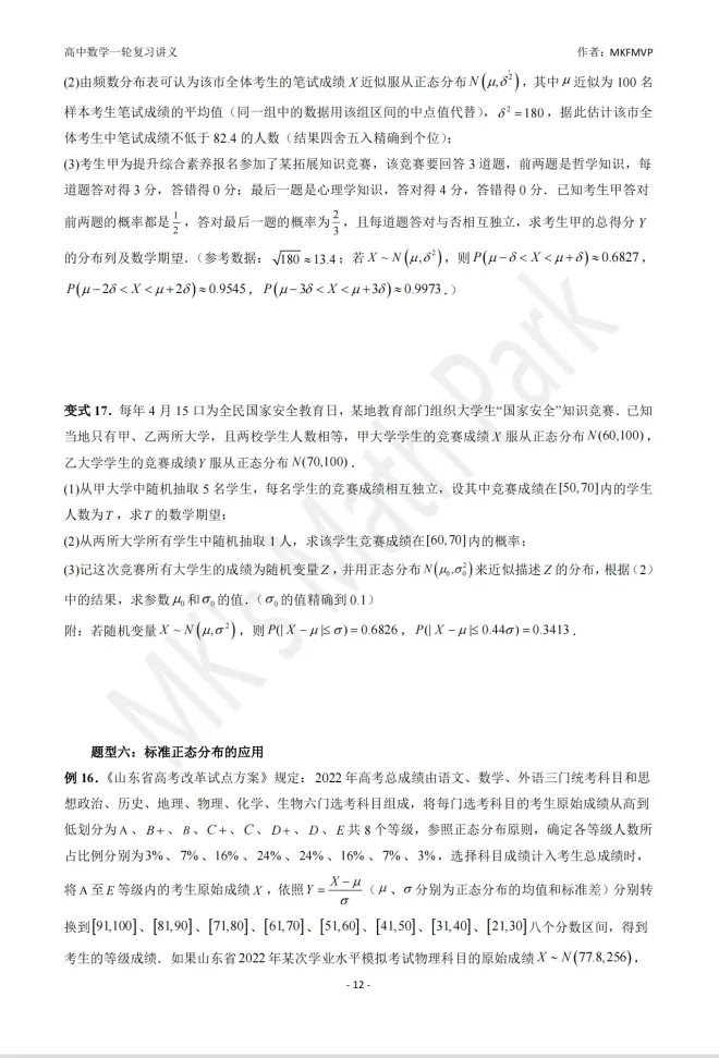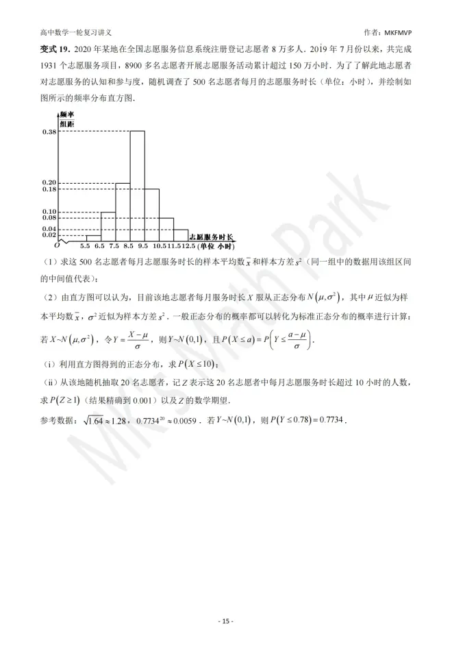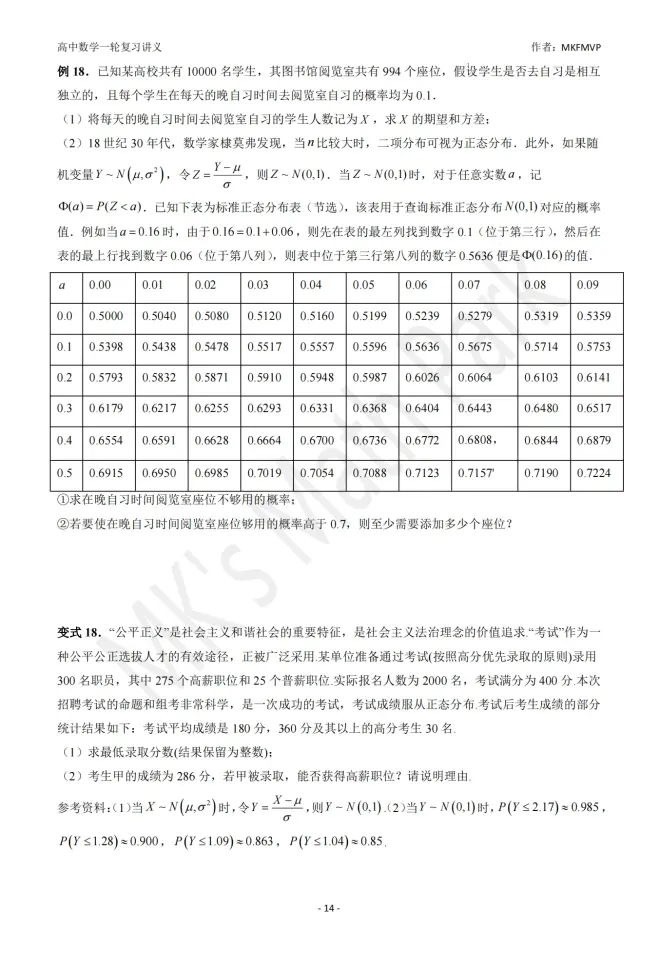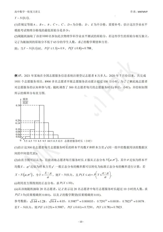 高中数学一轮复习讲义(专题50 正态分布)的评论 (共