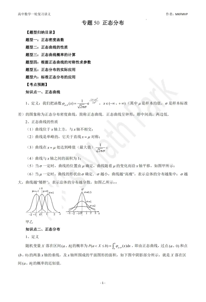» 高中数学一轮复习讲义(专题50 正态分布)
