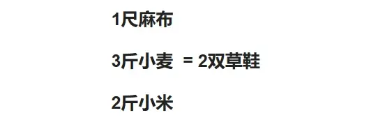 1尺麻布=2斤小米,或=3斤小麦,或=2双草鞋