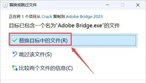 10.点击“替换目标中的文件“