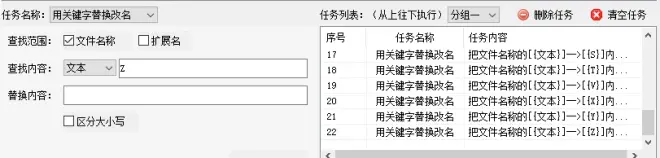 4、我们可以先将任务切换为“用关键词替换改名”,并选择“文件名称”这个查找范围