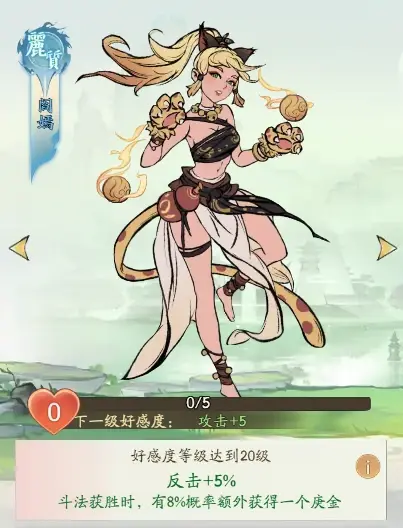 解锁阎嫣之后,可以增加角色的反击率,在斗法获胜时,有概率会获得一个庚石。