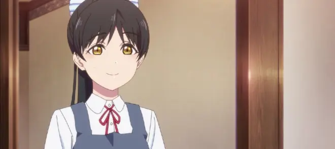 另一边,在一座住宅附近,叶月恋提着公文包从设计公司来到住宅门口。叶月恋用家钥匙打开门,走进了宅子内,女仆沙耶和大狗小点走过来迎接她。