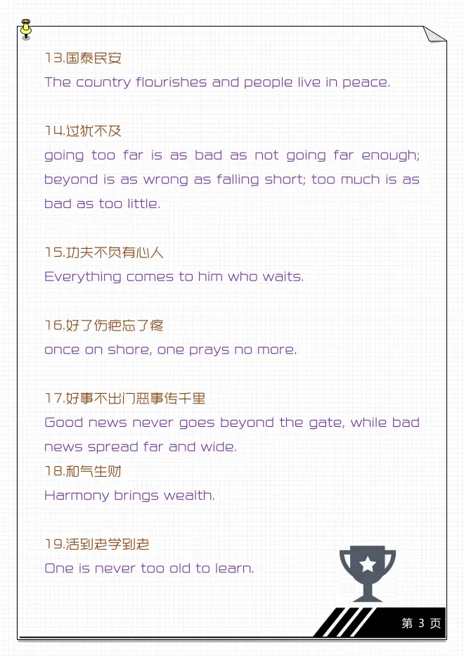人民日报整理,英文版中国俗语,超实用!的评论 (共