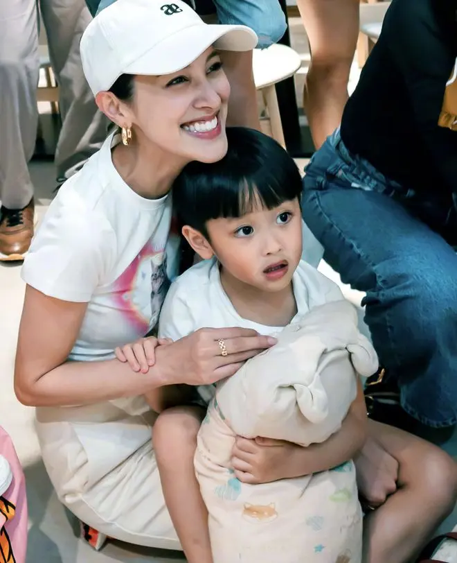 郑嘉颖的妻子陈凯琳及其帅气的长子也一起现身。