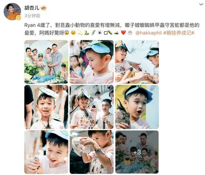 6月24日,胡杏儿的丈夫分享了次子的萌照,为其庆祝4岁生日,祝福小家伙身体健康、学业进步,对昆虫的热情永不变。