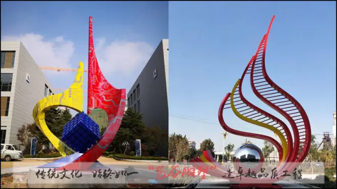 整的来说,企业不锈钢雕塑形体一般都是比较高大的,怎样与环境完美的融合与搭配,需要设计师在设计时就要考虑进去。
