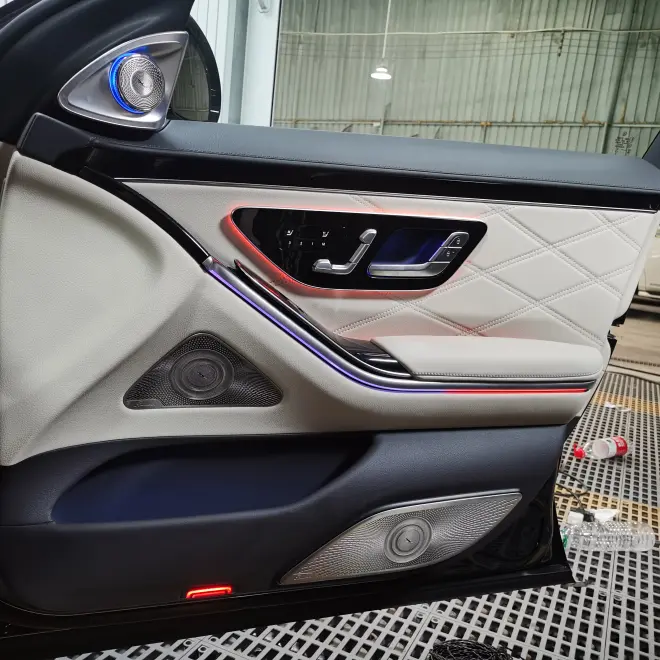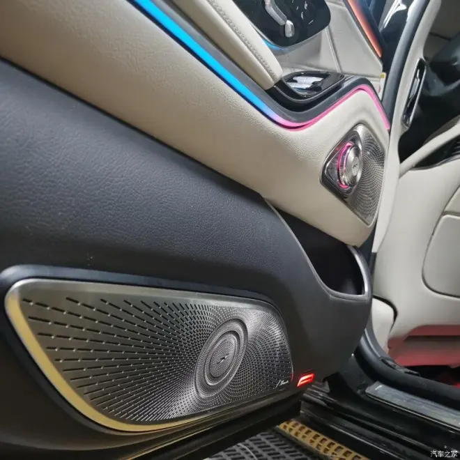 两侧门板替换成了4D旋转高音、中间换成大柏林之声中音、门板下方加装原厂大柏林之声低音盖板及低音扬声器。