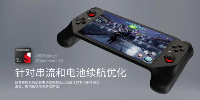 高通也同步推出了基于骁龙G3x Gen2的掌机参考设计,采用6.8英寸AMOLED屏幕,FHD+分辨率和144Hz刷新率,内置12GB LPDDR5X内存和UFS4.0闪存,双3000mAh电池。机身里面配有散热风扇,可以15W稳定运行。