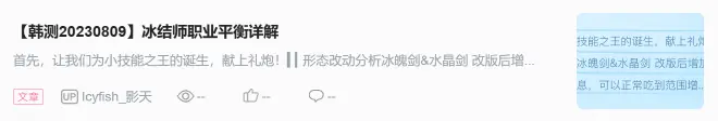 【韩正20230817】冰结师职业平衡追加部分测试