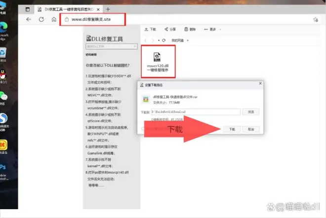 在电脑浏览器顶部输入:dll修复精灵.site【按下键盘的Enter回车键打开】点击dll修复工具下载。(亲测可以修复)